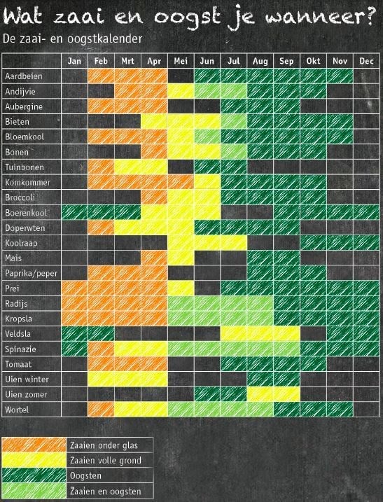 Heeft deze les je groene vingers gegeven en wil je meer soorten groenten kweken? Bekijk dan de moestuin-kalender. Hierop is handige informatie te vinden over wanneer je groenten het beste kunt zaaien, planten en oogsten!
