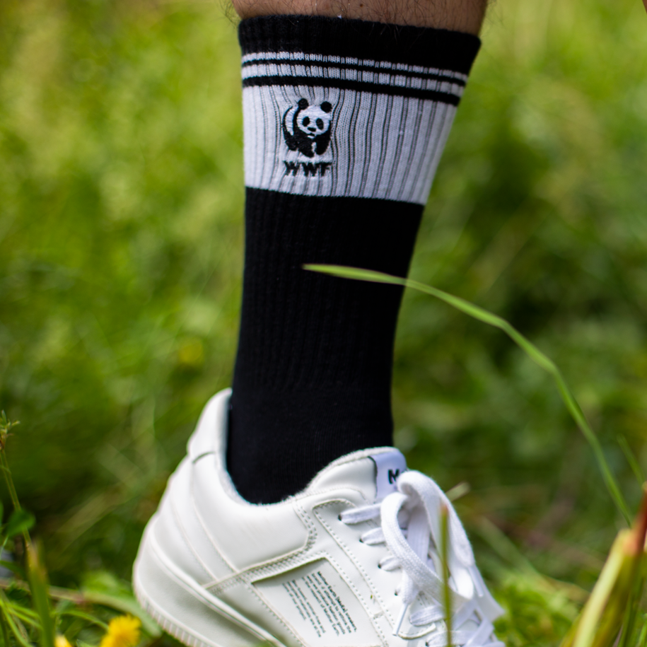 Na het succes van de witte sportsokken is deze er nu ook in het zwart. Sportsokken zijn helemaal retro. En met het geborduurde WWF logo er op maak je helemaal een statement!