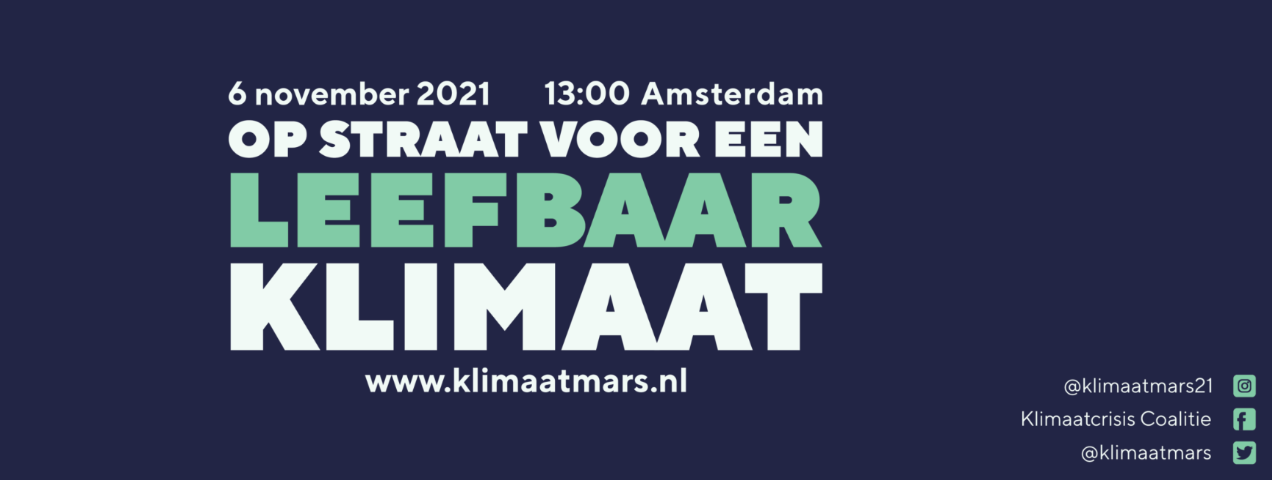 De Klimaatmars vindt plaats op zaterdag 6 november in Amsterdam. Die dag is de dag van de natuur tijdens de Klimaattop in Glasgow. En juist op die dag gaan we massaal de straat op voor onze natuur en een leefbaar klimaat. Iedereen is welkom en nodig!