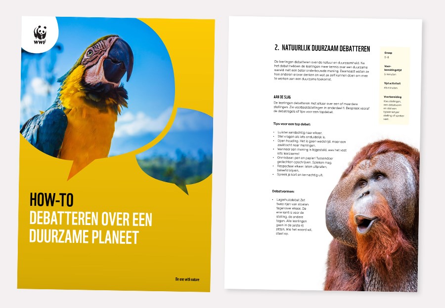 Moet al het plastic verboden worden? Mogen wolven afgeschoten worden als ze schapen opeten? Het organiseren van een debat over natuur en duurzaamheid wordt eenvoudig dankzij deze how-to! Met inspiratie voor discussievormen en handige voorbeeldstellingen.