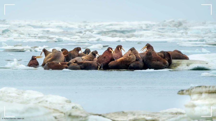 Walrussen leven rond de Noordpool en zijn afhankelijk van het ijs om uit te kunnen rusten. Door klimaatverandering en opwarming van de aarde smelt het ijs en heeft de walrus het steeds moeilijker.