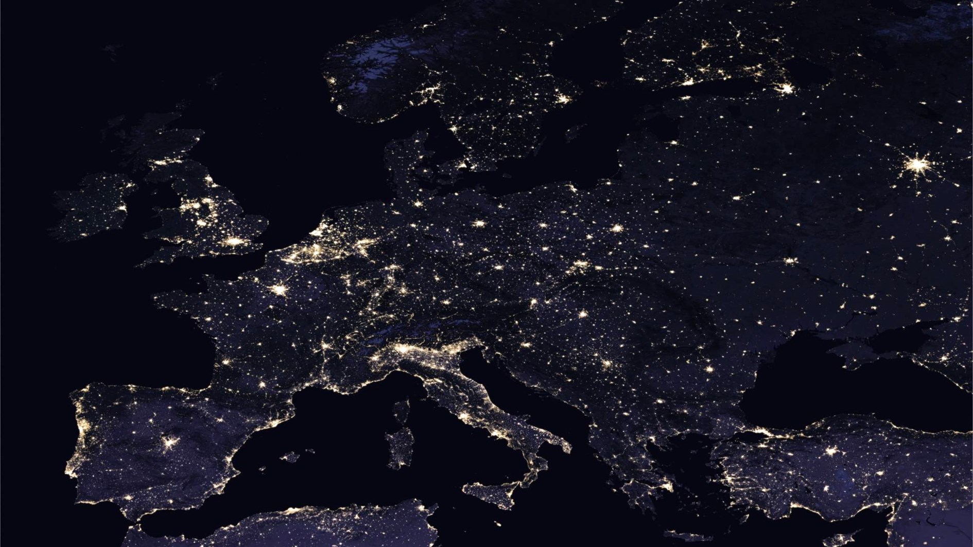 Begin de les met deze satellietfoto van Europa in de nacht. Kunnen kinderen landen (en misschien zelfs steden) aanwijzen?