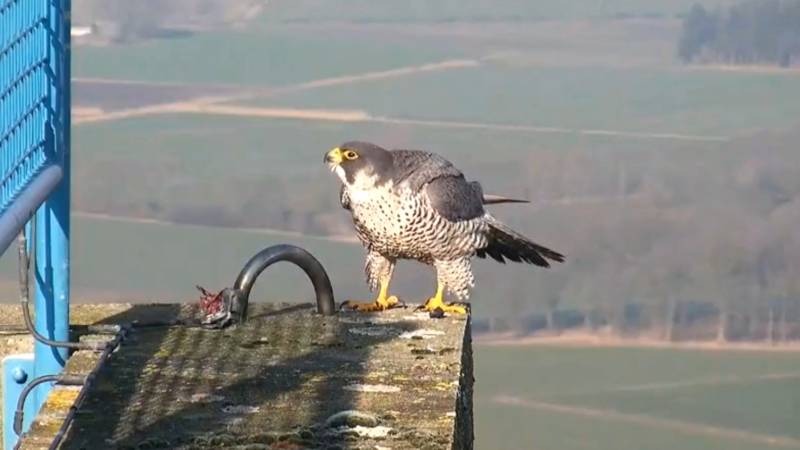 Als je op de knop hieronder klikt, ga je naar een website waar je mee kan kijken hoe een vrouwtjes slechtvalk haar eieren legt.