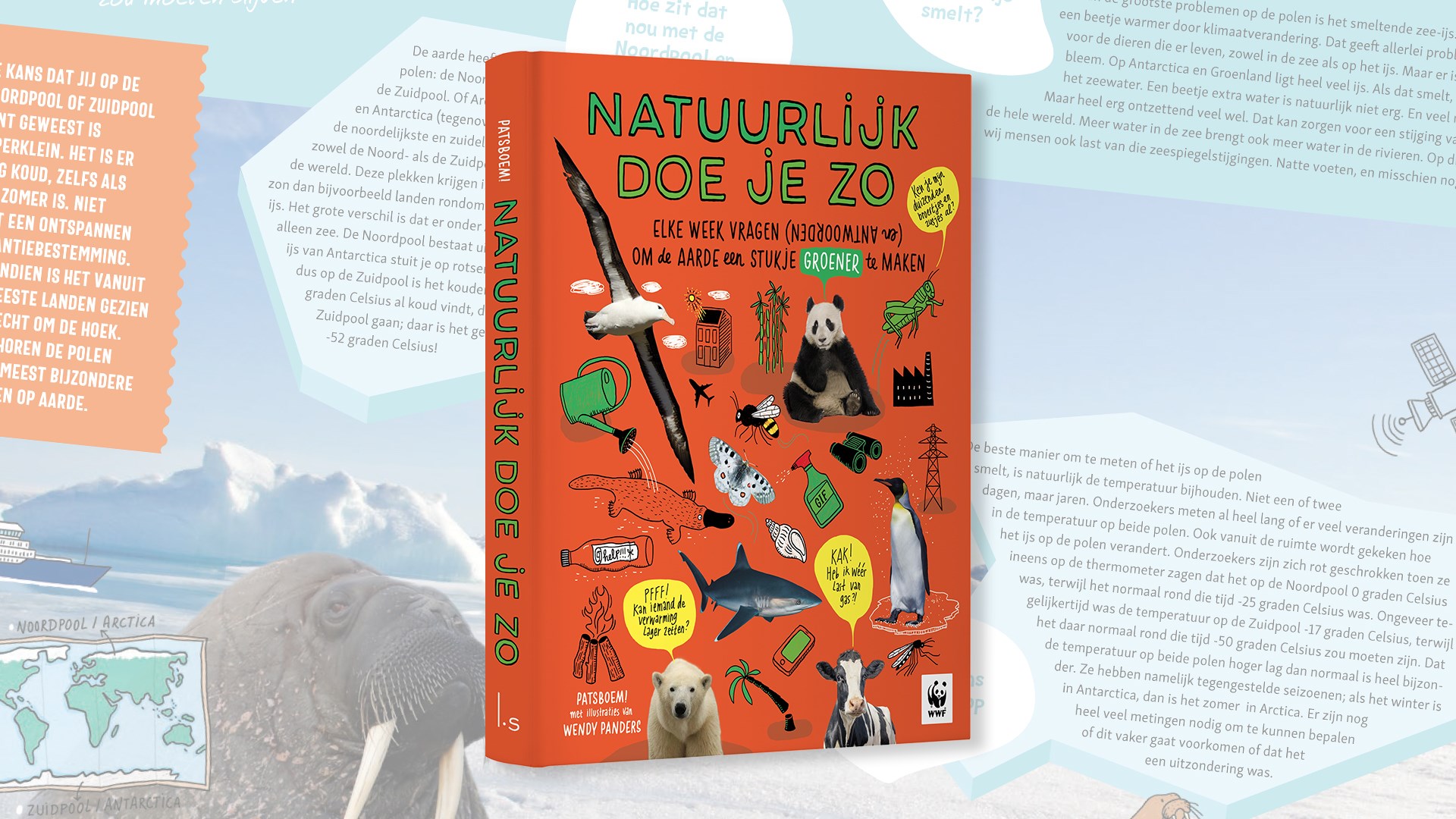 In het boek NATUURlijk doe je zo van het Wereld Natuur Fonds en Patsboem! komen 52 belangrijke thema's voorbij. Ontdek bijvoorbeeld alles over bedreidge beren, oceanen, groene uitvindingen of voedsel. Én leer meteen welke stappen je zelf kunt zetten om de aarde weer een beetje groener te maken.