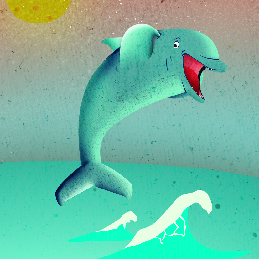 Het was feest voor de jonge dolfijnen. De zee was weer alleen van hen. Hoewel… wat deed dat grappige gele dingetje daar op de golven?