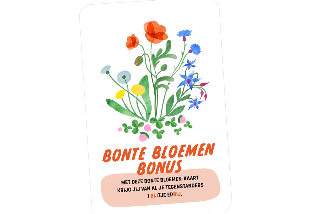 Héééél snel pakken. Hoe meer bloemen er ergens zijn, hoe meer bijen en hommels dat aantrekt. Sterker nog, deze kaart trekt zelfs bijen-kaarten aan. Op het eind van het spel mag je bij je tegenstander(s) 1 bij of hommel wegpakken.