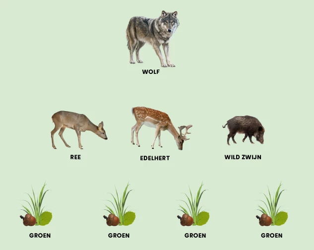 In Nederland lopen sinds kort weer wolven rond. Die houden onze wild-populatie gezond. Vijanden hebben ze ook zeker wel. Daar leer je alles over in dit voedselpiramide-spel.