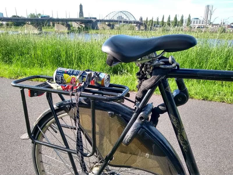 Marcel ergerde zich elke dag weer, als hij over de dijk tussen station Arnhem en zijn huis fietste. Overal waar hij keek, zag hij afval liggen. “Je kunt je er aan ergeren, maar je kunt er ook iets aan doen.” En dus ruimt hij nu elke dag wat afval op. Net zoveel als onder zijn snelbinders past.