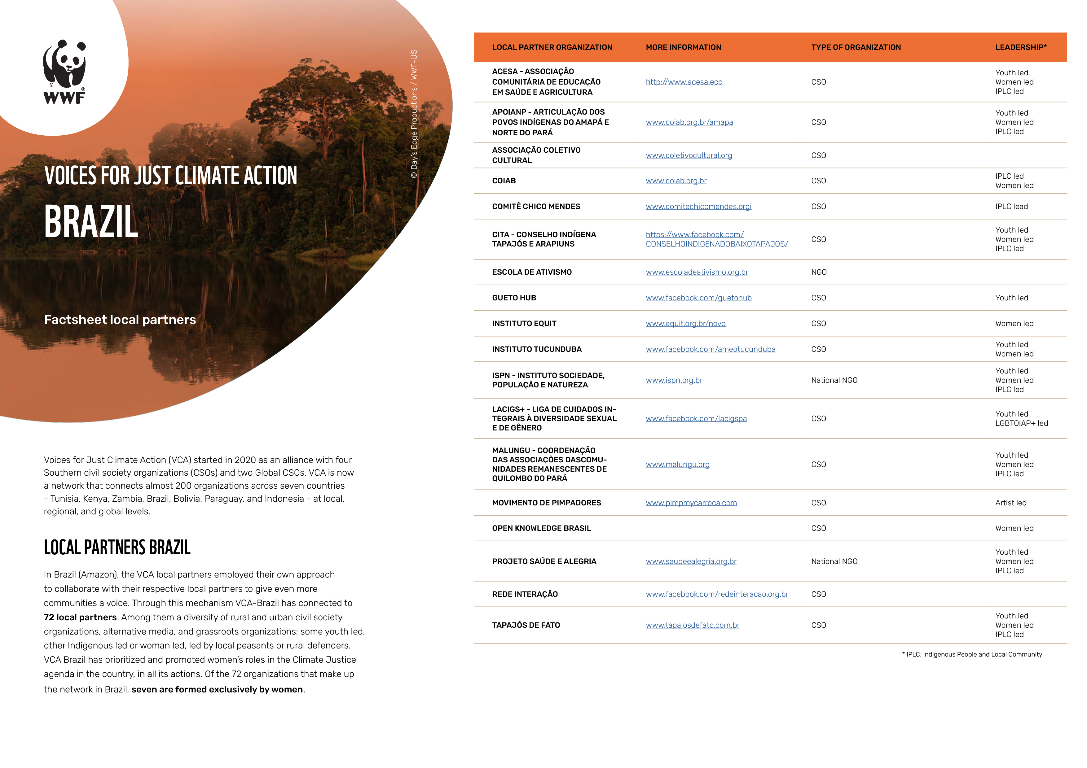 In the Amazon landscape (Brazil), VCA has 18 local partners. They employed their own approach to collaborate with their respective local partners to give even more communities a voice. Through this mechanism VCA-Brazil has connected to 72 local partners.