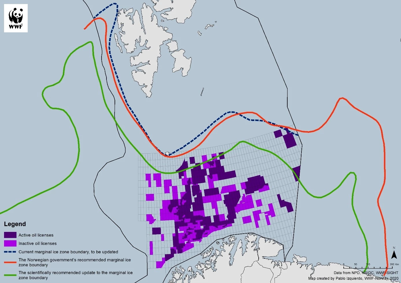 Het zee-ijs, en met name de rand van het zee-ijs, is onmisbaar voor de vele dieren in het Noordpoolgebied. Er groeien veel algen, waar vissen en kreeften van afhankelijk zijn. Deze dieren worden weer gegeten door robben en walvissen, hier hebben de ijsberen weer profijt van. Deze marginale ijs-zone wordt bedreigd door de opwarming van de aarde, maar ook door de nieuwe economische ontwikkelingen in het gebied. Deze nieuwe activiteiten zetten nog meer druk op de natuur van het Noordpoolgebied. Seismisch onderzoek en scheepvaart zorgen voor onderwatergeluid, wat schadelijk is voor veel zeedieren zoals walvissen. Olie- en gaswinning brengen in dit afgelegen gebied enorme risico’s met zich mee; een olieramp in het Noordpoolgebied is niet te voorkomen én niet op te ruimen, met alle gevolgen van dien.