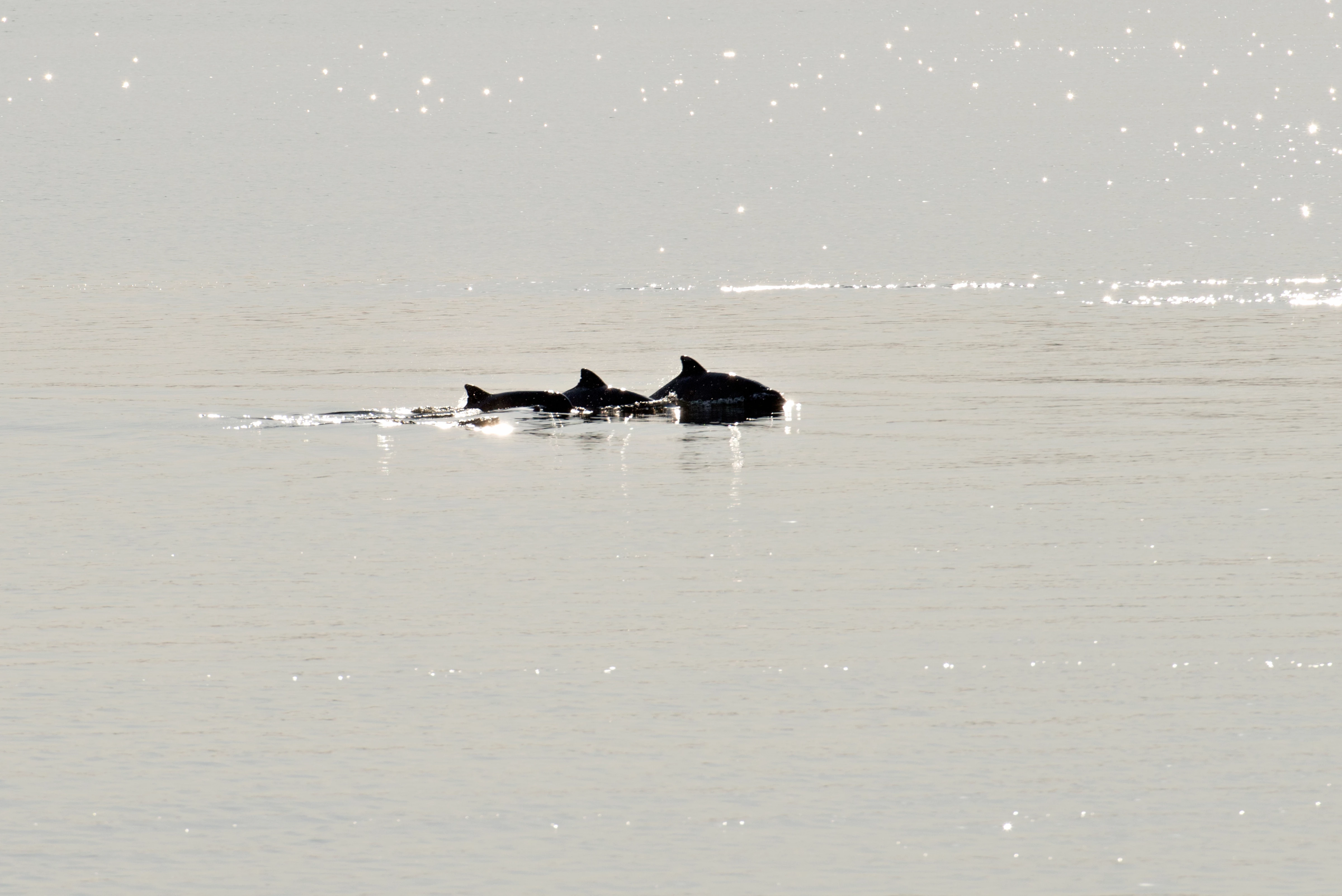 Tucuxi-rivierdolfijnen in de verte, foto uit 2014
