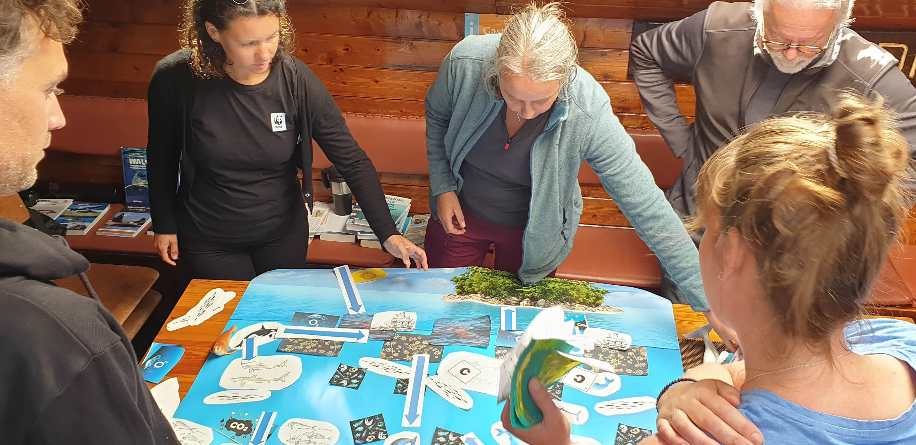 Mijn favoriete theoretische onderdeel gaat over de invloed van walvissen en hun poep op klimaat. Conclusie: het beschermen van walvissen is een belangrijke schakel in de strijd tegen klimaatverandering. Dit is zo’n mooi verhaal dat ik hier graag meer over vertel ik in een volgende blog. Hier alvast een sneak preview: na de presentatie gaan we namelijk aan de slag met het spel om zelf te zien hoe walvissen, plankton en andere zeedieren verbonden zijn met de opname van CO2 en de productie van zuurstof en hoe dit beïnvloed wordt door menselijke activiteiten zoals visserij, scheepvaart en walvisjacht. Kan je niet wachten om in het onderwerp te duiken? Check dan de Whale Poo Seamulator.