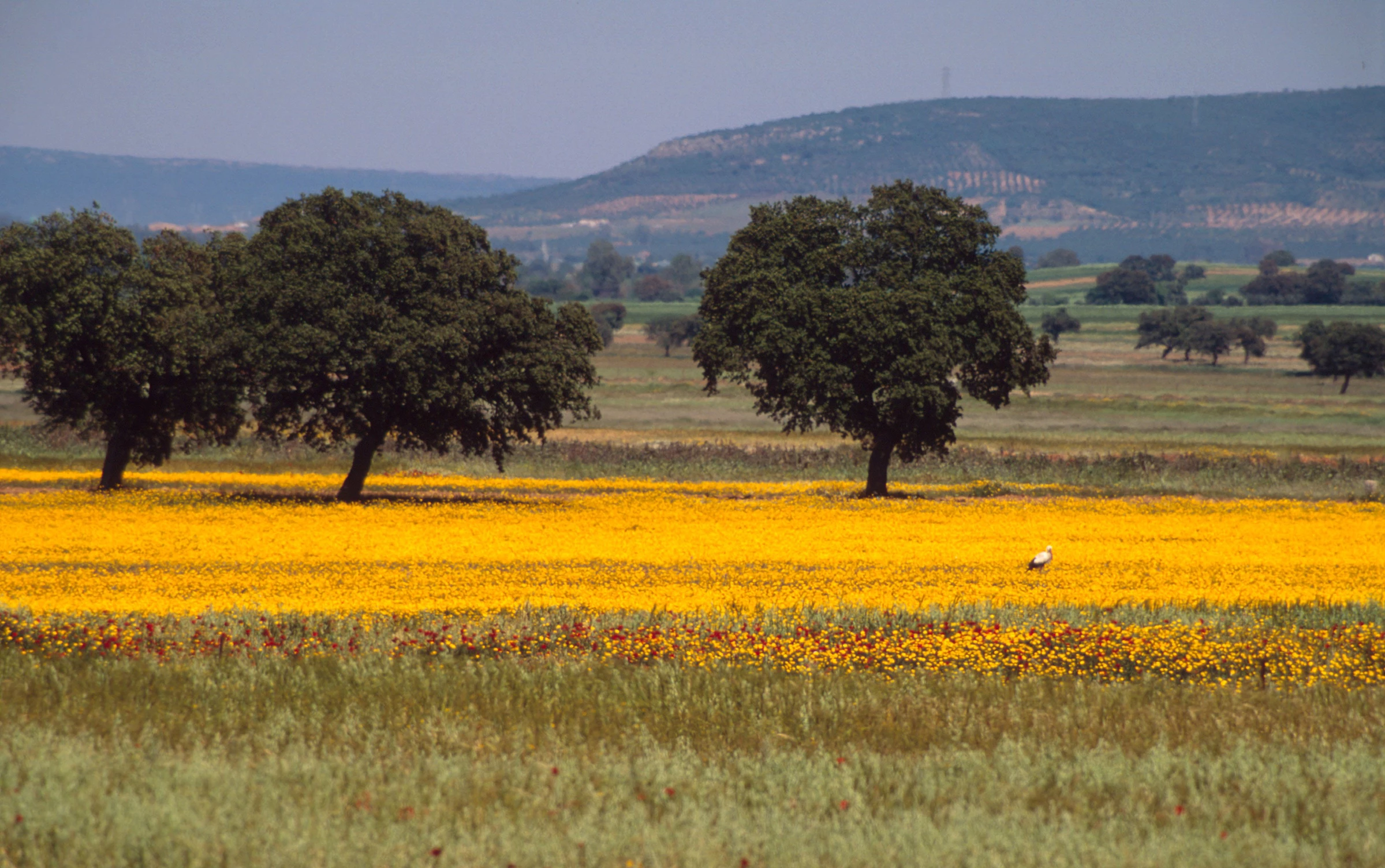 Niet dat ik nu zelf zo goed ben in het herkennen van vogels. Er staan vogelaars met telelenzen zo groot als een sterrenkijker naast me en die delen de ene na de andere bijzondere waarneming. Ik heb nog nooit zo’n groot aantal roofvogels bij elkaar gezien. Dit is een unieke plek in Europa en niet alleen vanwege het Nationaal Park. De grote dichtheden aan roofvogels is te danken aan het omliggende landbouwgebied: de dehesa.