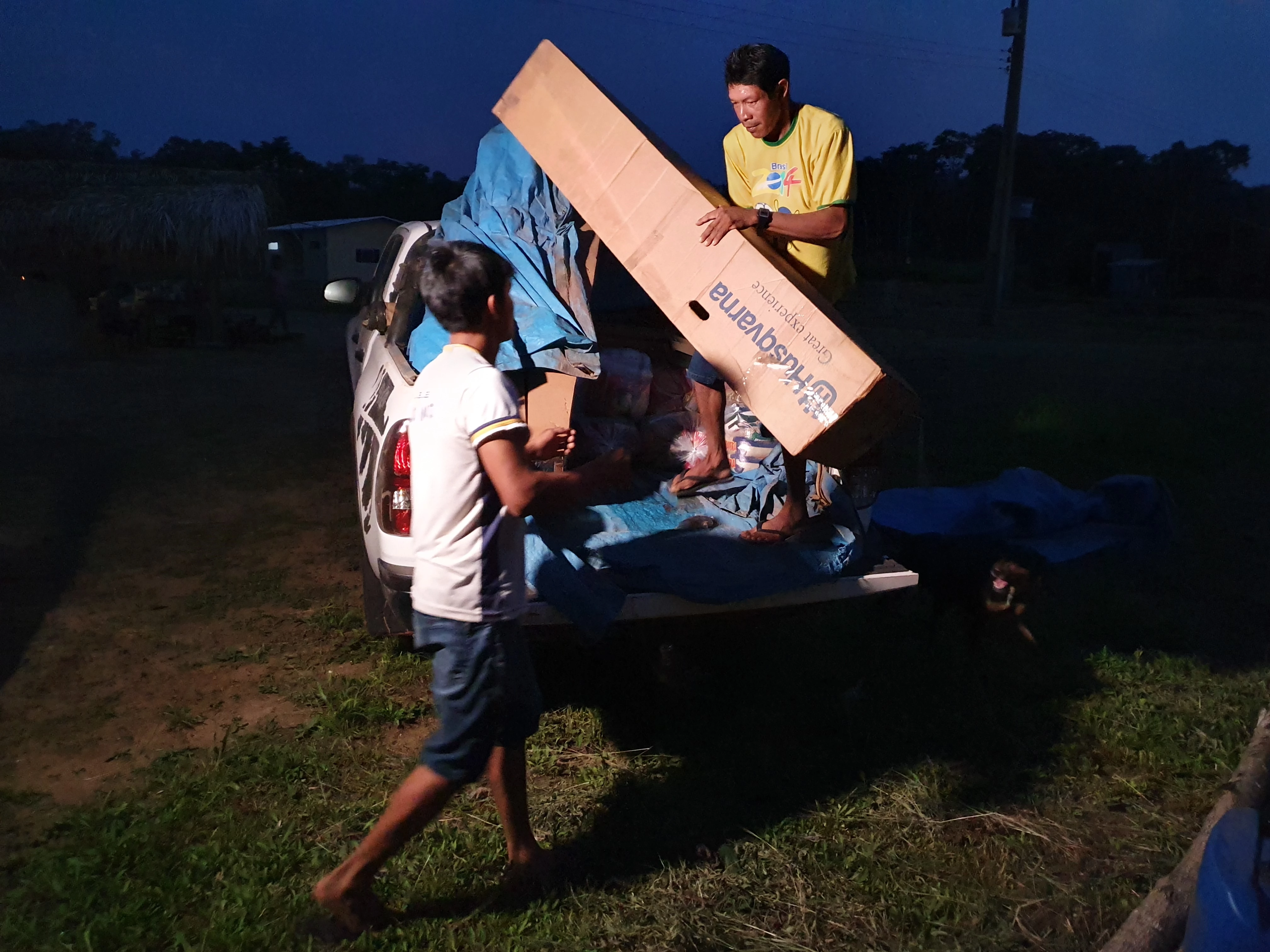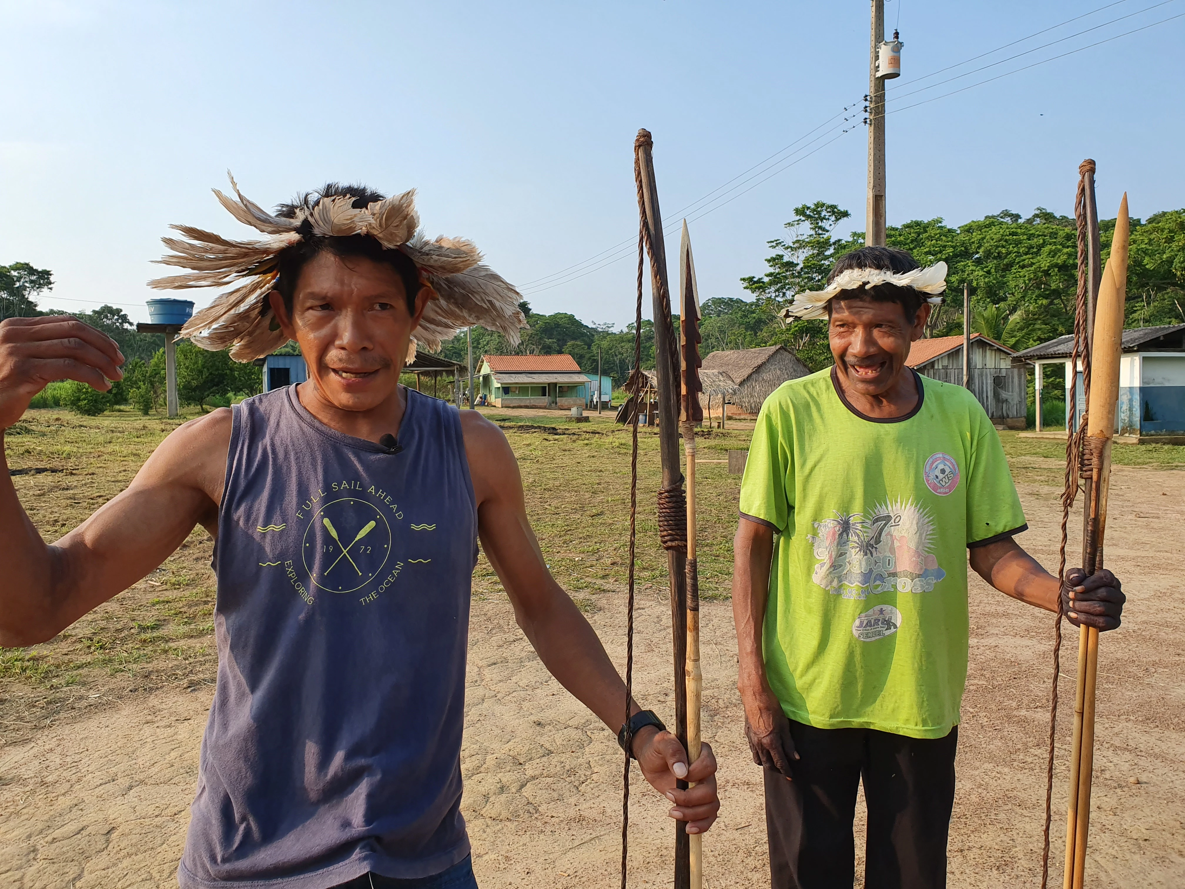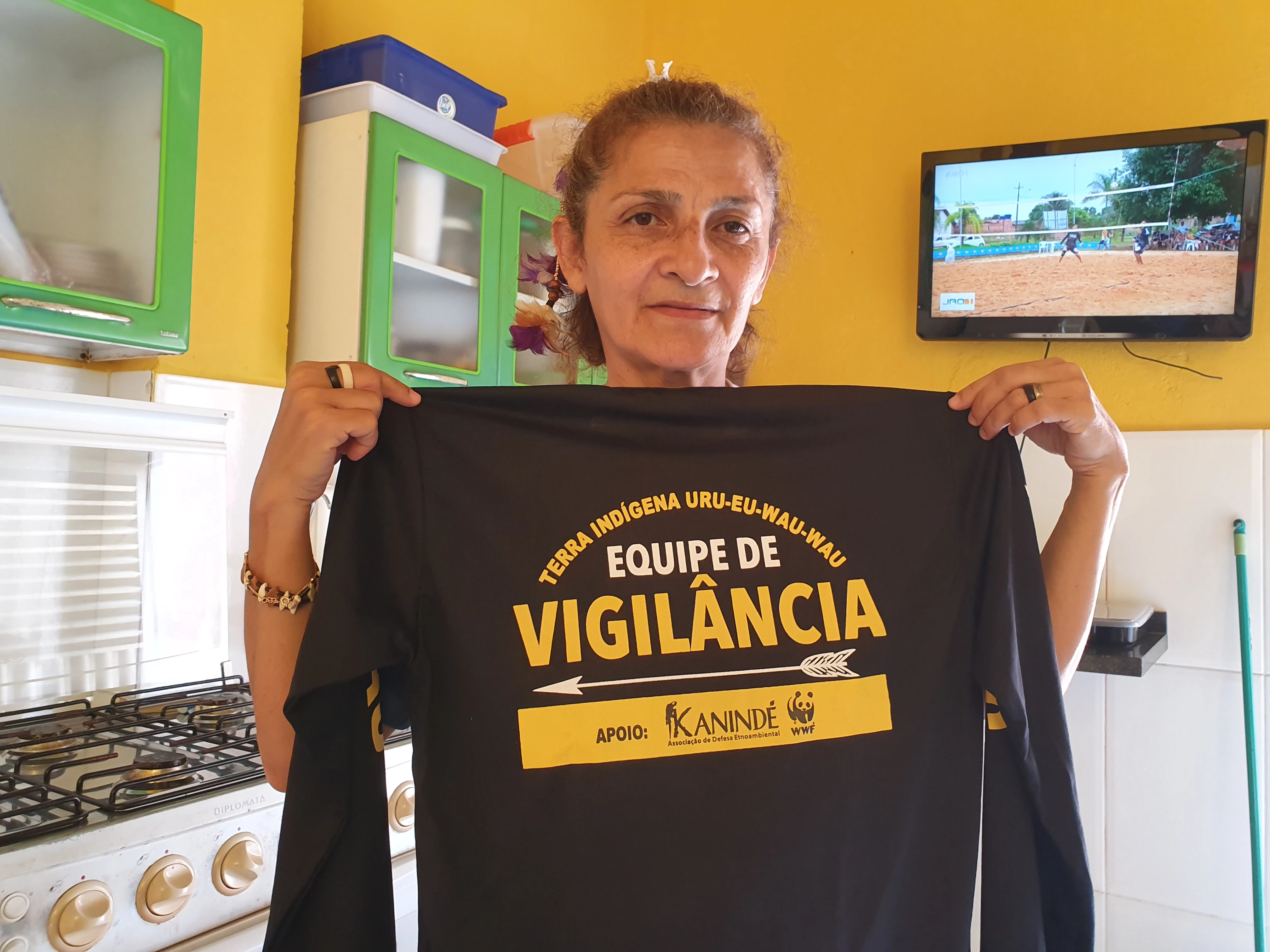 Terwijl we wat eten, vertelt Djuup over de angstige tijd die ze doormaken. Tien dagen na de verkiezingen stonden ineens 40 mannen in hun bos, ze schreeuwden dat ze het recht hadden om de grond in te nemen omdat president Bolsonaro dat had gezegd. De Uru Eu Wau Wau-bewoners hebben de invasie op hun mobiele telefoon vastgelegd en deze later via Kanindé verspreid. Een groep mannen uit het dorp loopt sindsdien regelmatig de randen van het bos na om te kijken wat er gebeurt en, als het nodig is, juridische hulp in te schakelen. Deze monitoring is volgens hen nu hard nodig. Het helpt als ze daar mobiele telefoons voor kunnen gebruiken, om zo ter plekke bewijs te verzamelen. Ook vertelt Djuup dat hij erg blij is met onze komst en onze interesse in hun leefwijze en cultuur. Hij en zijn mensen worden vaak inferieur behandeld en het doet hem goed dat we hen zelfs vanuit Europa steunen in hun strijd.