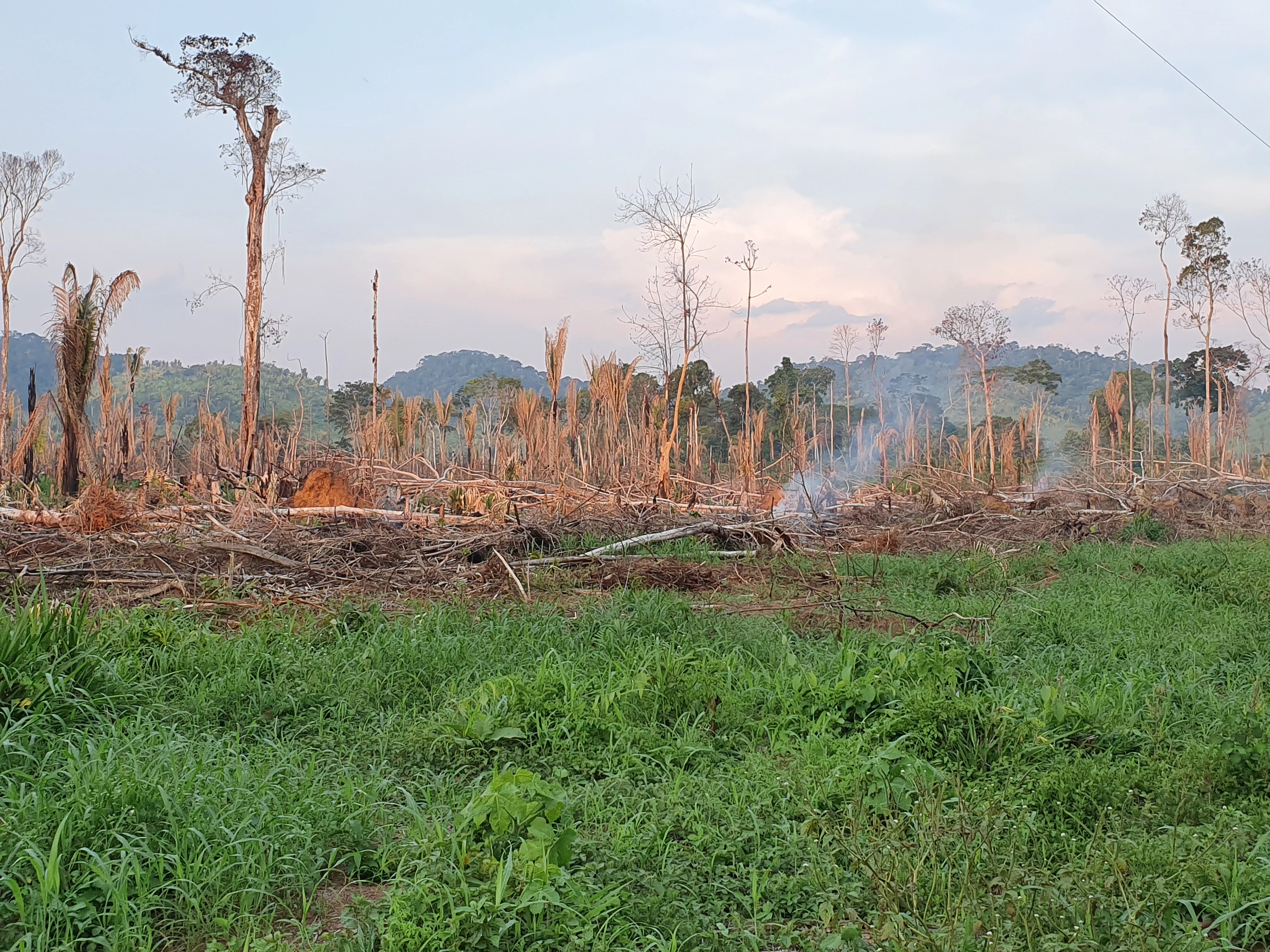 Op de grens van het beschermd natuurgebied zien we witte rookwolken opstijgen. Het is een stuk regenwoud dat net is vernietigd en nog smeult. Stukje bij beetje wordt zo het land van de inheemse bevolking verder ingepikt. Het is confronterend om nu met eigen ogen te zien wat de afgelopen maanden het nieuws domineerde.