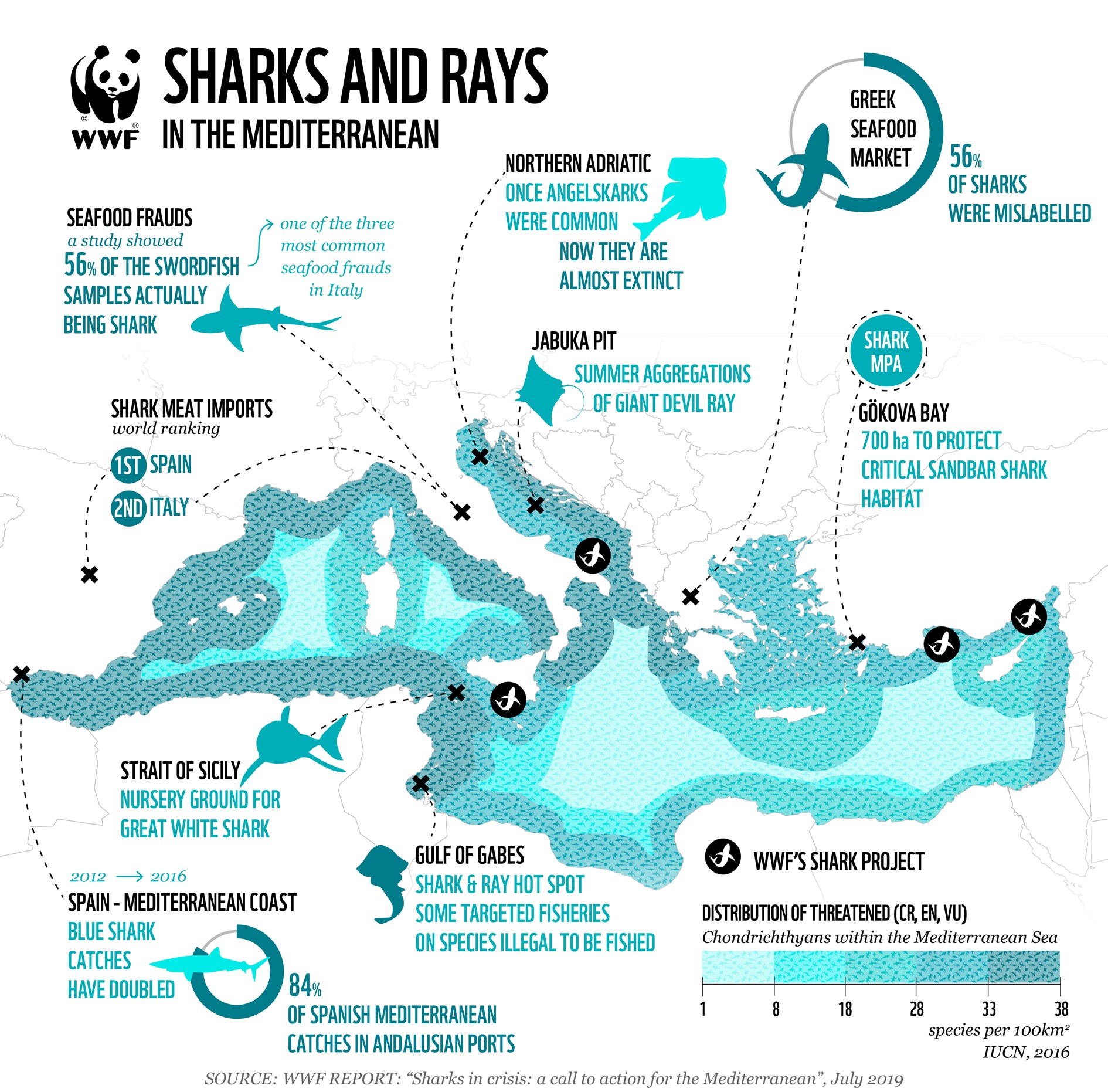 In het nieuwe rapport, genaamd “Sharks in Crisis: A Call to Action for the Mediterranean”, wordt het meest recente onderzoek gepresenteerd dat laat zien hoe niet-duurzame en soms illegale visserijen de populatie haaien en roggen in de regio heeft uitgeput. De situatie wordt nog eens verslechterd door een gebrek aan beheer en handhaving van de visserij en de markt. Daarnaast is er een algemeen gebrek aan data en kennis. Het rapport wordt gepubliceerd voorafgaand aan Shark Awareness Day, op 14 juli.