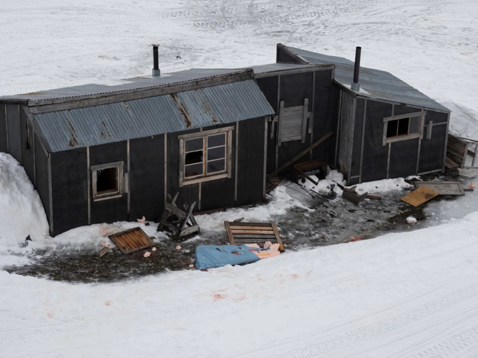 De hut waar de ijsbeermoeder en haar jong hadden ingebroken