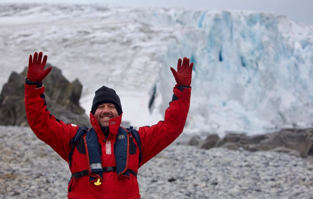 “Je moet je voorstellen, dat het er ijskoud is. Je draagt vier lagen kleding, dan beschermende kleding en een skibril. Je hebt er geen geluid van mensen, alleen wilde dieren om je heen. Dan heb je het geluid van gigantische ijsbergen – die maken enorm veel lawaai – want ze zijn constant in beweging, het geluid van zee-ijs dat gevormd wordt en gletsjers waarvan stukken ijs afbreken. Het is spectaculair! We waren bultrugwalvissen aan het bestuderen en op een gegeven moment kwam er een nieuwsgierige walvis naar de boot toe. Hij dook onder en nam een kijkje onder de boot. We zagen zijn staart verdwijnen. We dachten, wat gebeurt er nu? Plotseling zagen we aan de andere kant van de boot zijn kop omhoog steken. Hij leek ons van heel dichtbij te willen bekijken, zoals wij hem aan het bekijken waren. Dat was heel erg gaaf!”