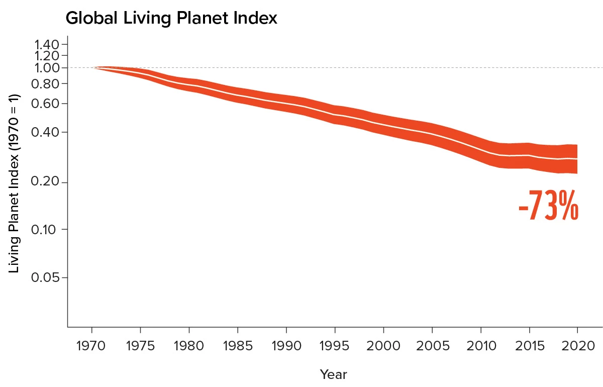 De Living Planet Index 2024 laat zien hoe groot de natuurverliescrisis is. Tussen 1970 en 2020 is de omvang van populaties in het wild gemiddeld met 73% afgenomen. Dit is gebaseerd op bijna 35.000 populatietrends van 5.495 soorten amfibieën, vogels, vissen, zoogdieren en reptielen. Regionaal gezien vonden de grootste verliezen plaats in Latijns-Amerika en de Cariben (-95%). Zoetwatersoorten kenden de grootste afname - een schokkende 85%.