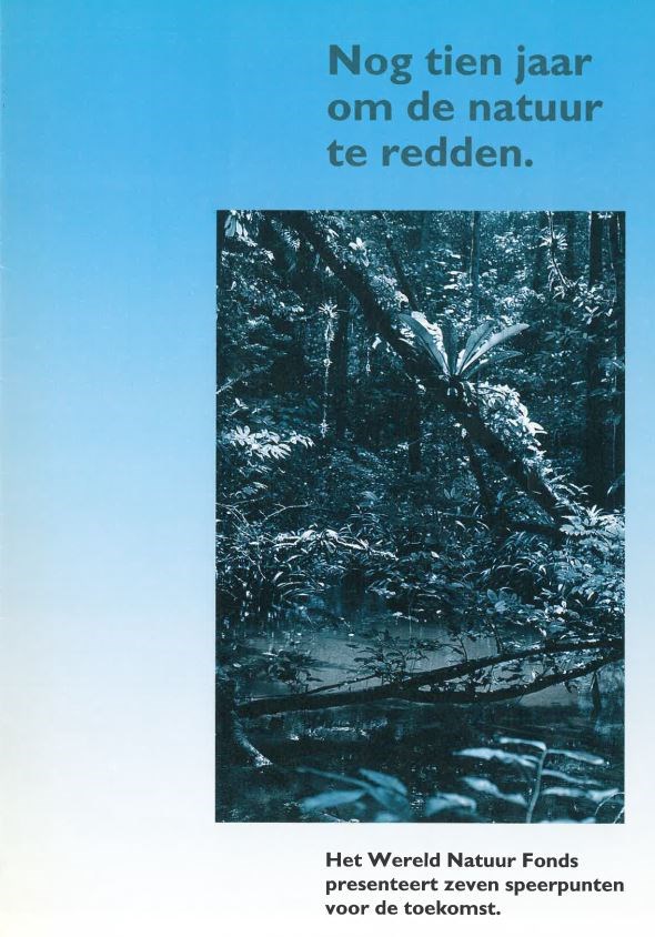 Volgens gezaghebbende bronnen rest de mens nog een decennium om de bedreigde natuur in de wereld veilig te stellen. Als reactie op deze sombere voorspelling publiceert het Wereld Natuur Fonds de beleidsvisie ‘Nog tien jaar om de natuur te redden’. Daarin formuleert de organisatie zeven doelen, speerpunten genoemd, die ertoe moeten leiden dat de aantasting van de natuur en het milieu stopt en wordt teruggedrongen.