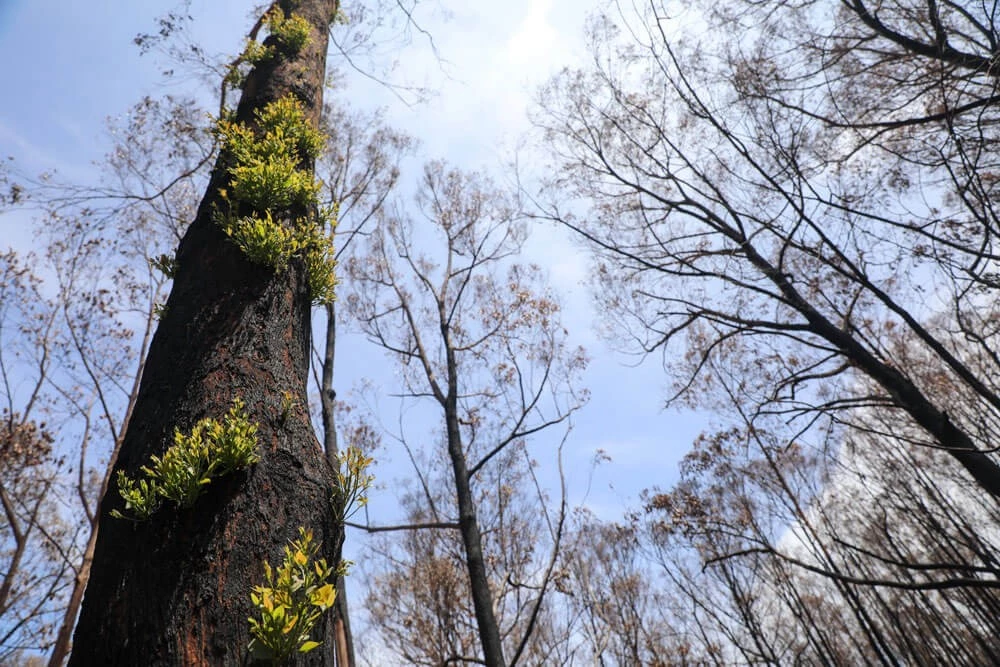 Verbazingwekkend genoeg vinden Olivia en haar team twee maanden na de brand bij Spicers Peak Station nog een smeulende boomstronk. Maar er zijn ook lichtpuntjes: op sommige plaatsen duikt alweer weelderig nieuw blad op en het team ziet bewijs dat koala's zich voeden met deze hergroei.