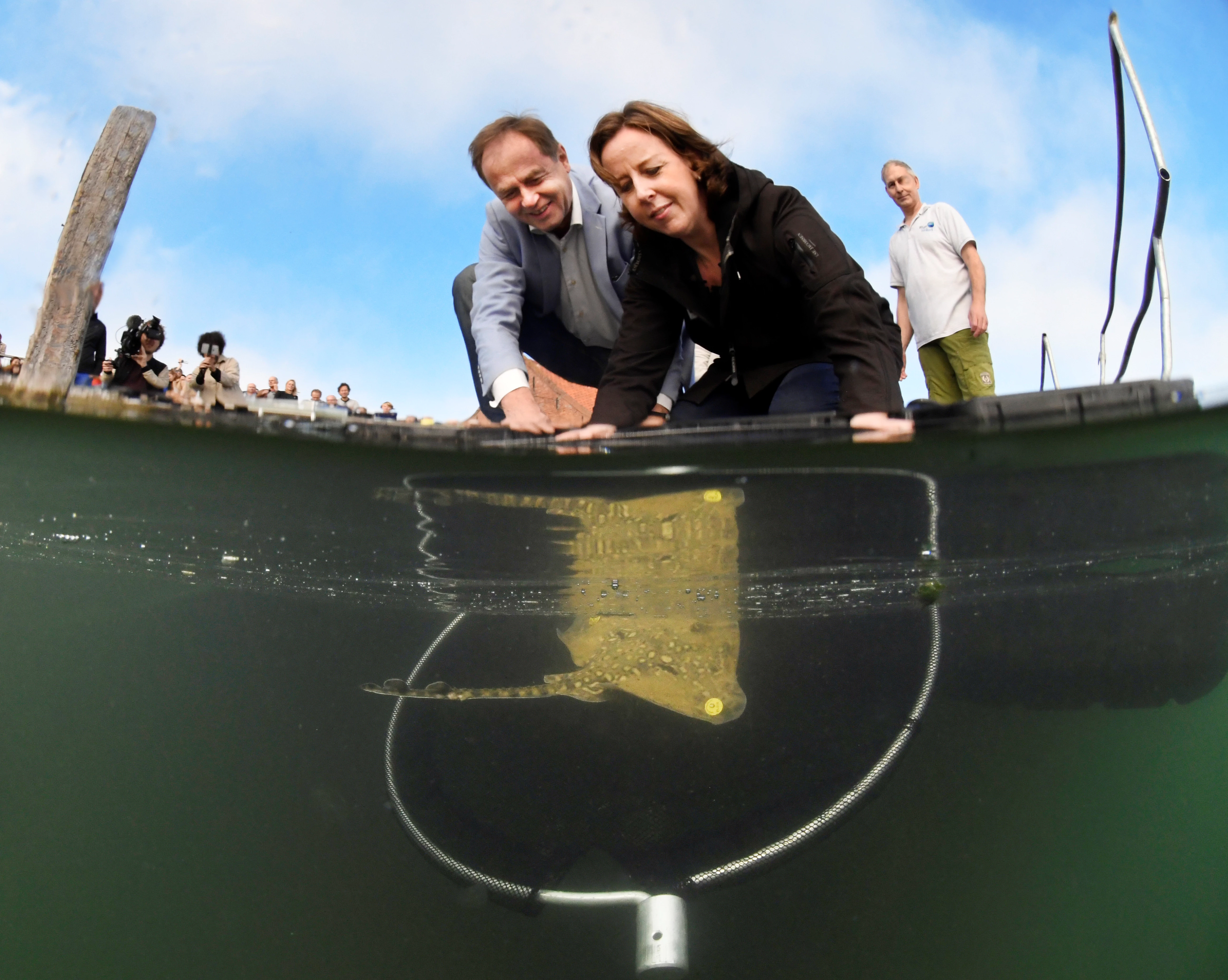 In dit vernieuwende project werken vijf organisaties samen die zich bezig houden met natuurbescherming van de Noordzee: Wereld Natuur Fonds, Sportvisserij Nederland, Dutch Shark Society, Blue Linked en Stichting De Noordzee. Het pilotproject dat vandaag is gestart gaat meer informatie opleveren die bijdraagt aan het herstel van haaien- en roggenpopulaties in de Noordzee. Ook wordt bekeken of de uitgezette stekelroggen de route richting de Noordzee goed kunnen vinden.