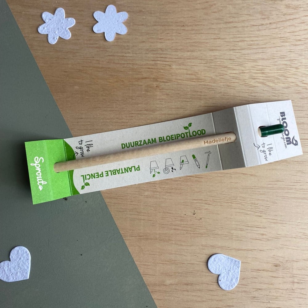 Bestel dit complete pakketje bestaande uit een flowerheart, een ansichtkaart van bloeipapier en een bloeipotlood. Allemaal geschikt om in de grond te doen en nieuwe plantjes uit te laten groeien.