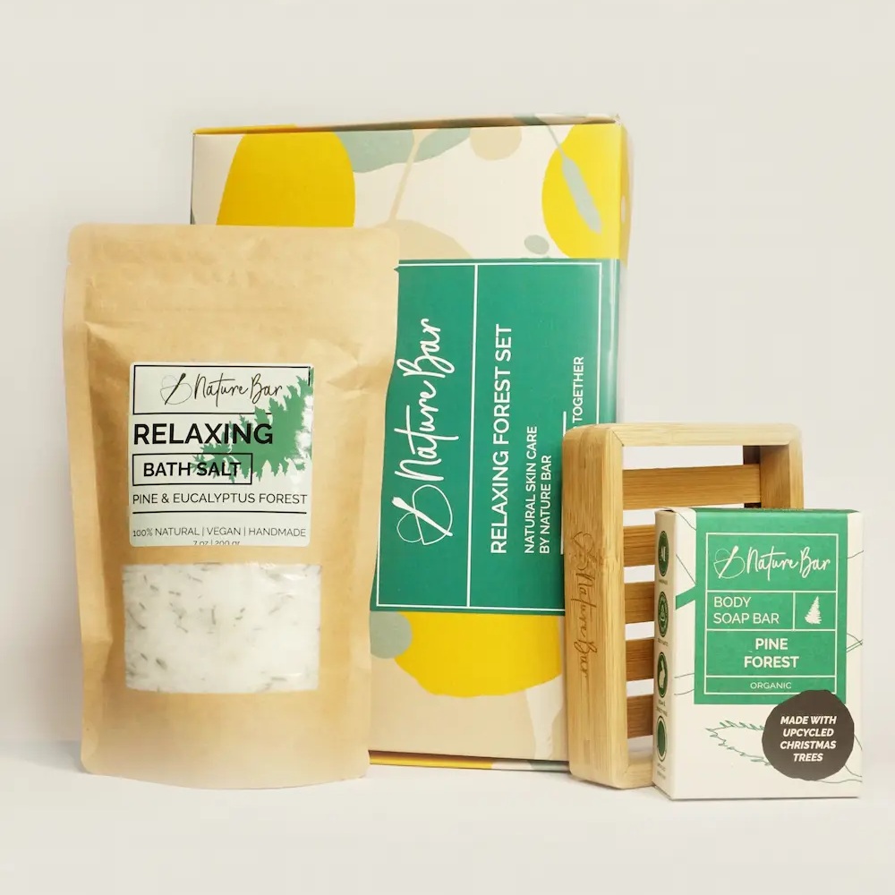 Gun jezelf een moment van pure ontspanning met de Relaxing Forest Set. Met de verfrissende geur van dennen, zwarte peper en eucalyptus waan je je in een serene naaldbomenbos. De combinatie van mineraalrijk Epsomzout en botanische extracten reinigt en voedt je huid op milde wijze. Vegan, dierproefvrij en ambachtelijk geproduceerd in Amsterdam – goed voor jou én de natuur.