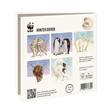 WWF kerstkaartenmapje - Winterdieren - Maartje Bodt - 10 vierkante kerstkaarten met envelop