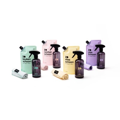 De producten van Zo Schoon zijn ontworpen om de planeet niet om zeep te helpen. De producten zijn vegan en gemaakt met natuurlijke stoffen van plantaardige bronnen. Je voegt zelf water toe aan de concentraten waardoor je bespaart op transport, verpakkingsmateriaal én energie. Je maakt er elke ruimte van je huis verantwoordt mee schoon. Kies uit pakketten voor keuken, sanitair, glas of allesreiniger