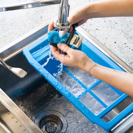 De GuppyFriend Sink Fliter is even simpel als effectief. Je plaats het frame met het speciale filter eenvoudig op je gootsteen en gooit je vuile water van bijvoorbeeld het vloeren boenen, ramen zemen of auto wassen door het filter. Daarna verwijder je de in het filter achtergebleven deeltjes en gooit die in de afvalbak. Klinkt goed? Doen!