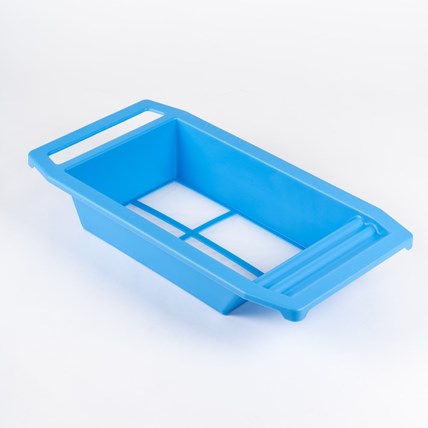 Het gootsteen filter (47 x 22 cm) past op de meeste wasbakken, maar werkt ook als het een klein beetje schuin staat als het net niet past.