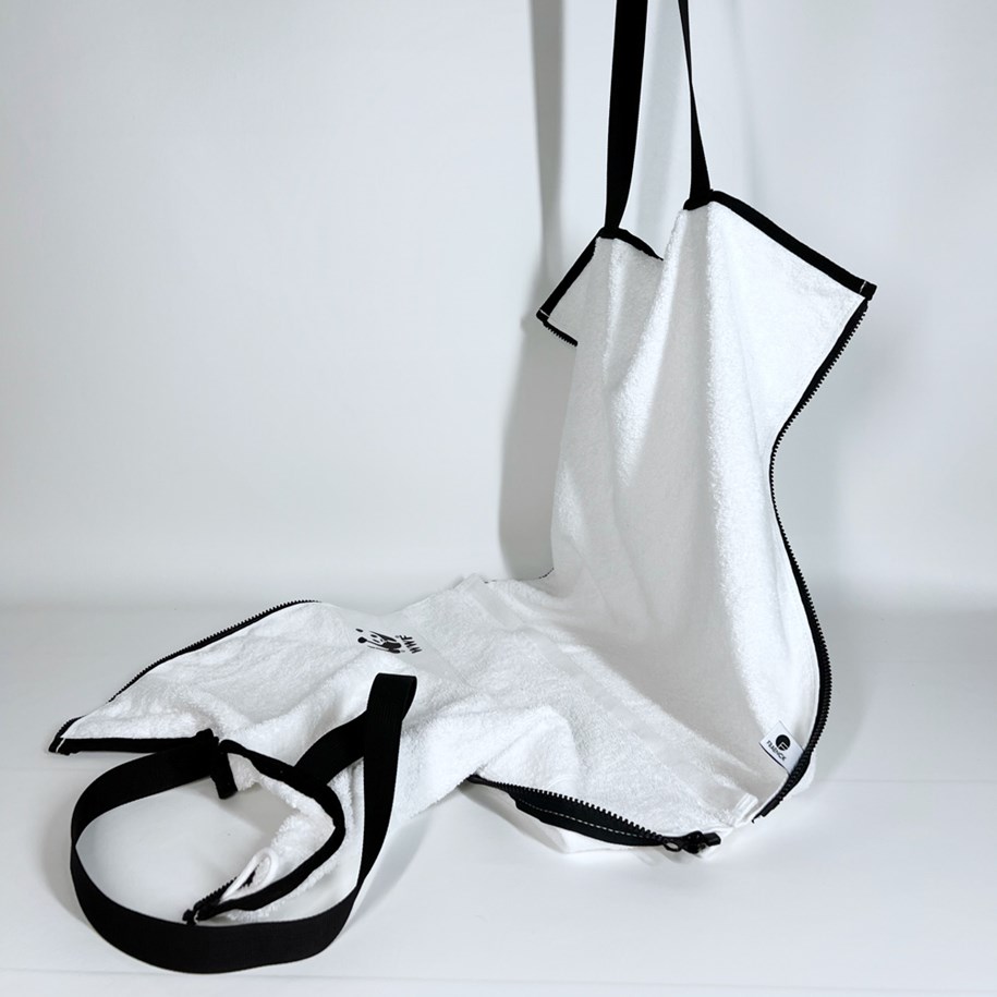 De totedoek is een slimme en multifunctionele combinatie van een tote bag en een handdoek in één. Ideaal om al je strandspullen in mee te nemen en, eenmaal op locatie, eenvoudig om te toveren tot een comfortabele handdoek om op te zitten. Deze praktische tas is ontstaan uit een creatieve samenwerking met het Nederlandse merk Fraenck en heeft een uniek, functioneel ontwerp.
