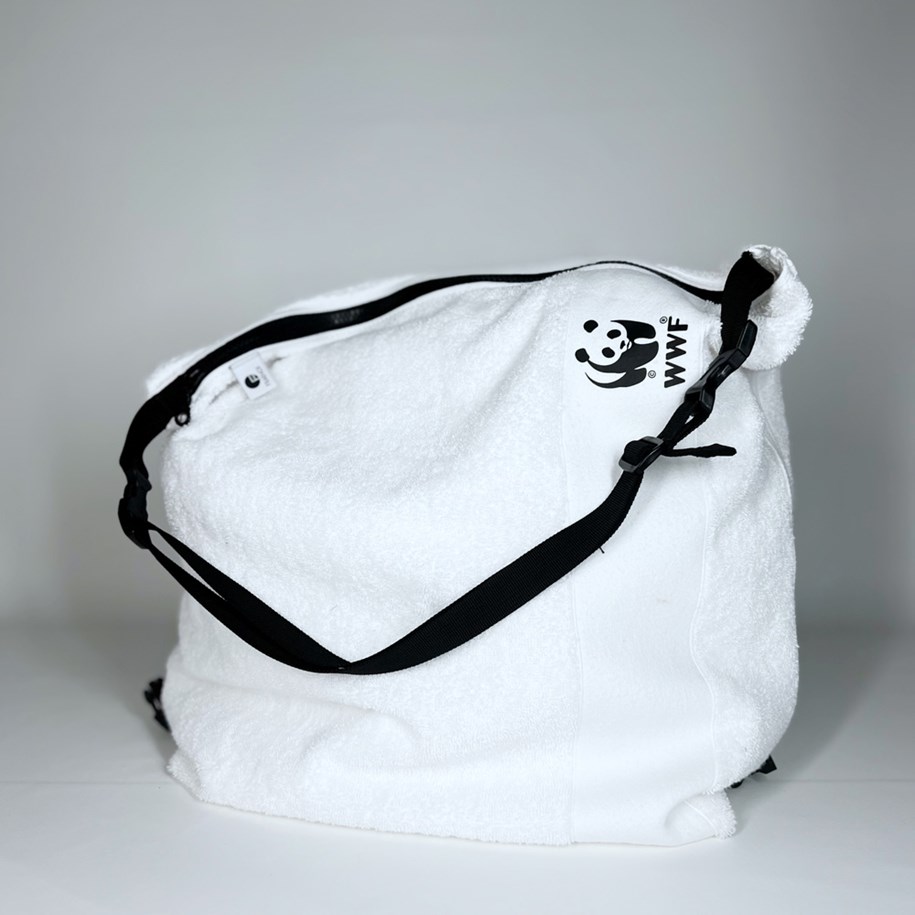 - Schoudertas upcycled van de witte WWF-handdoeken