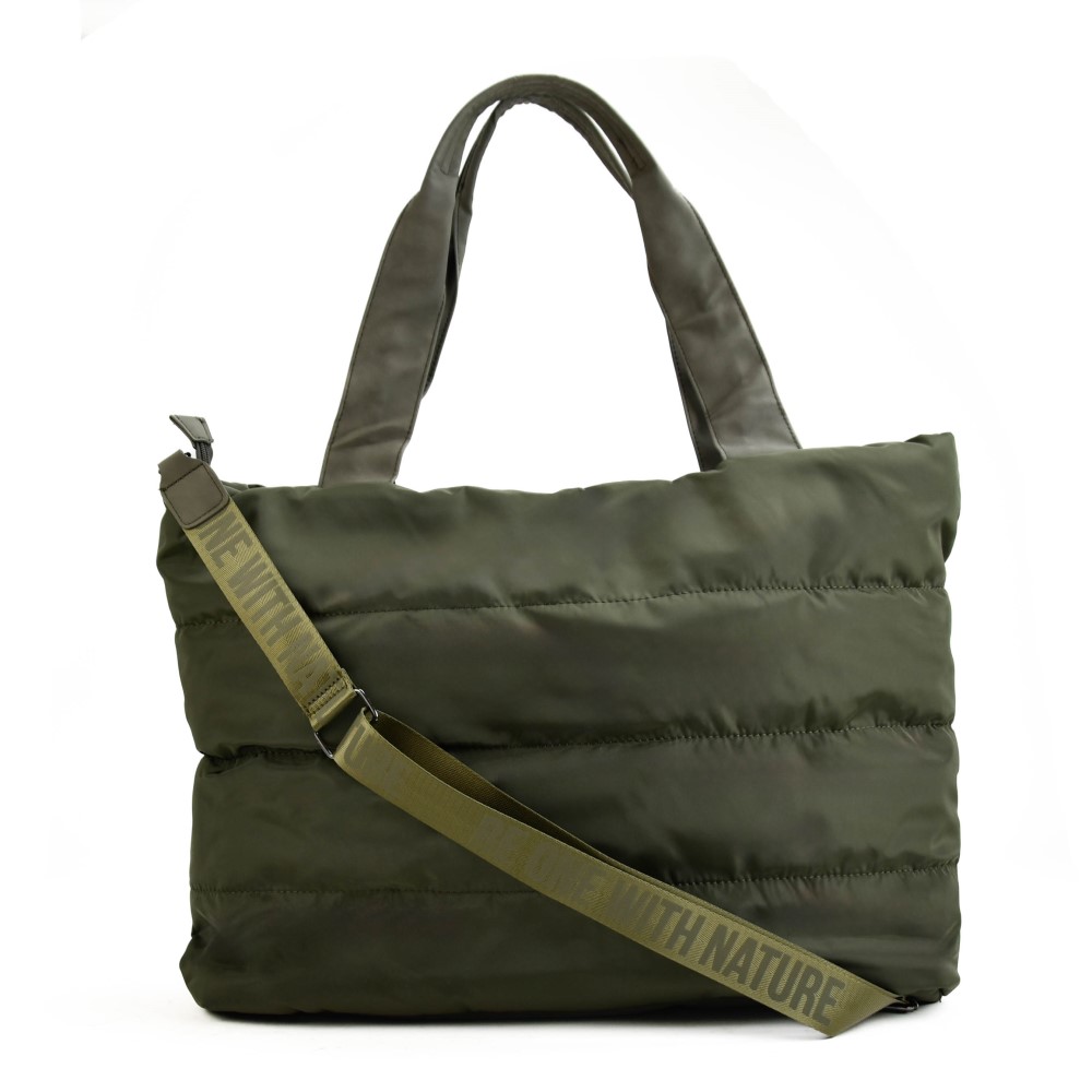 Puffy, puffed of padded. Allemaal termen voor een trend die niet meer weg te denken is uit het modebeeld. Deze groene shopper voldoet helemaal aan die trend.