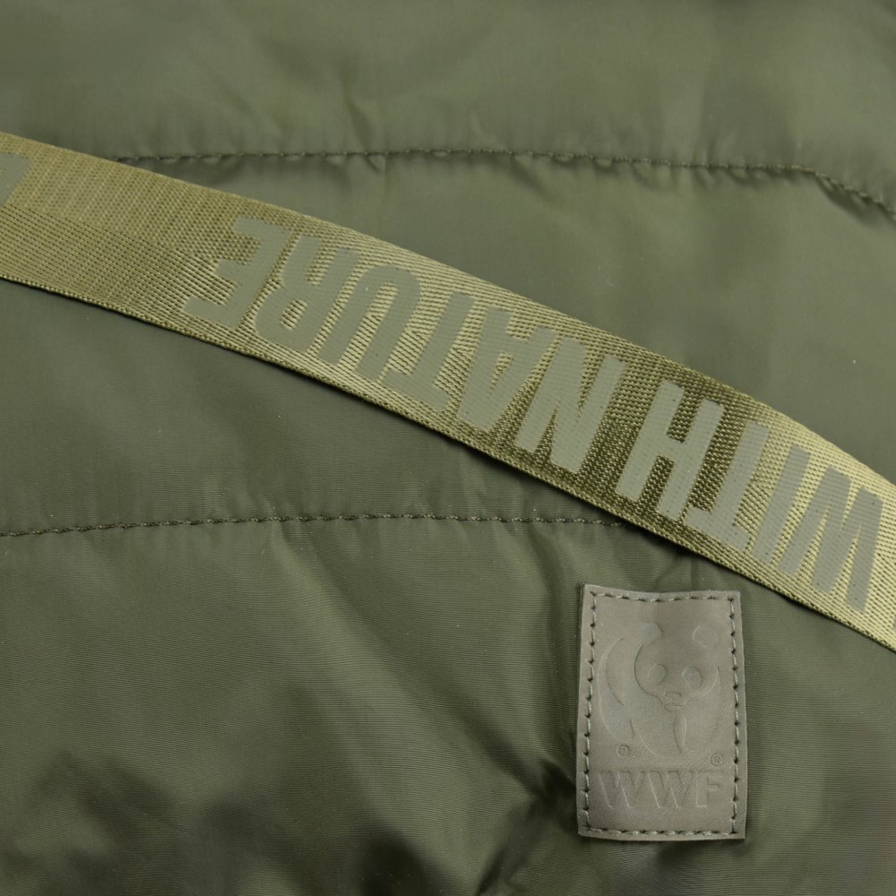 Aan de buitenkant is een subtiel WWF-logo bevestigd. De verstelbare schouderband is voorzien van onze slogan 'Be one with nature'.
