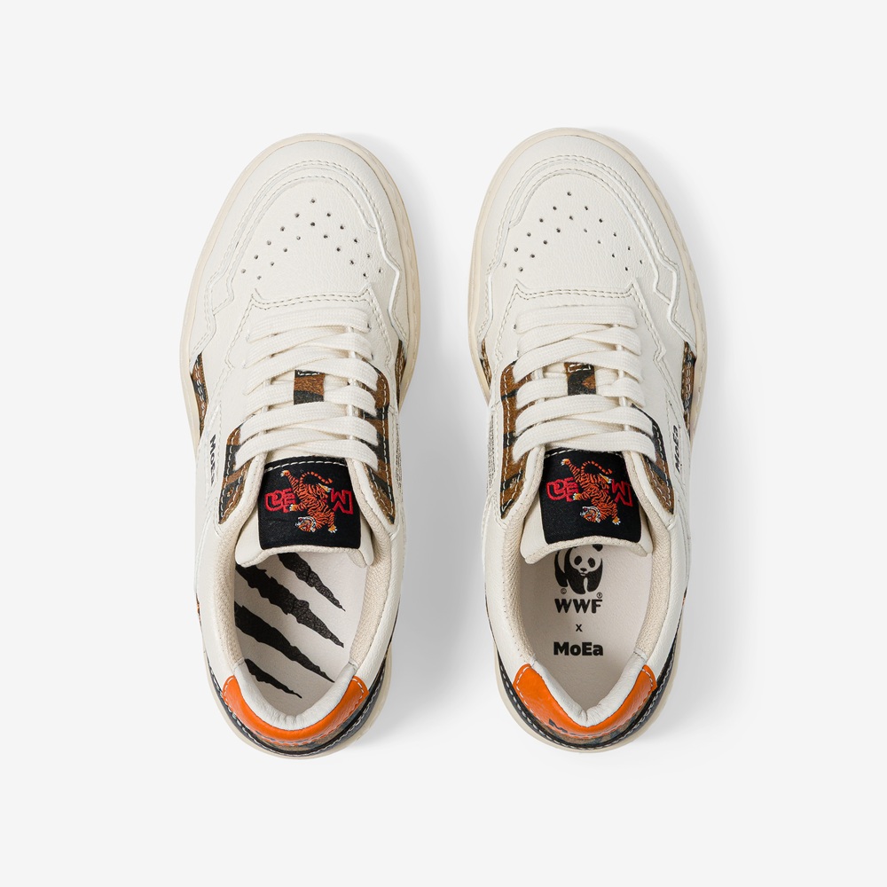 De WWF x MoeA Gen1 Tiger sneaker is niet alleen stijlvol en lekker comfortabel: deze duurzame schoen draagt ook een krachtige boodschap uit. De ontwerpers van MoEa hebben zich laten inspireren door de tijger. Subtiele details verwijzen naar de iconische strepen van dit dier.