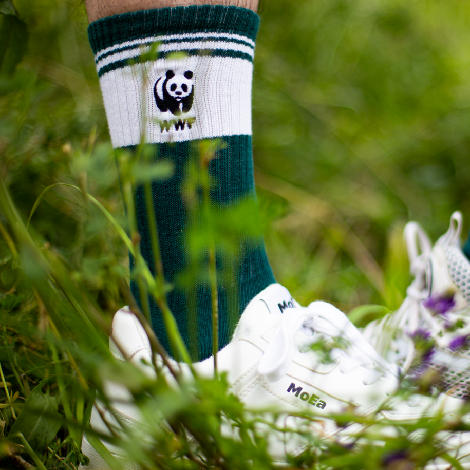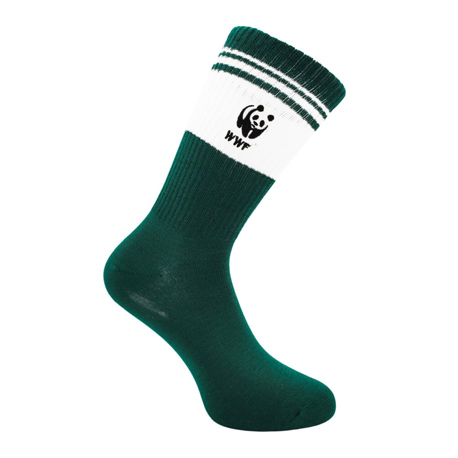 Donkergroene retro sokken met WWF logo - in verschillende maten Lees verder