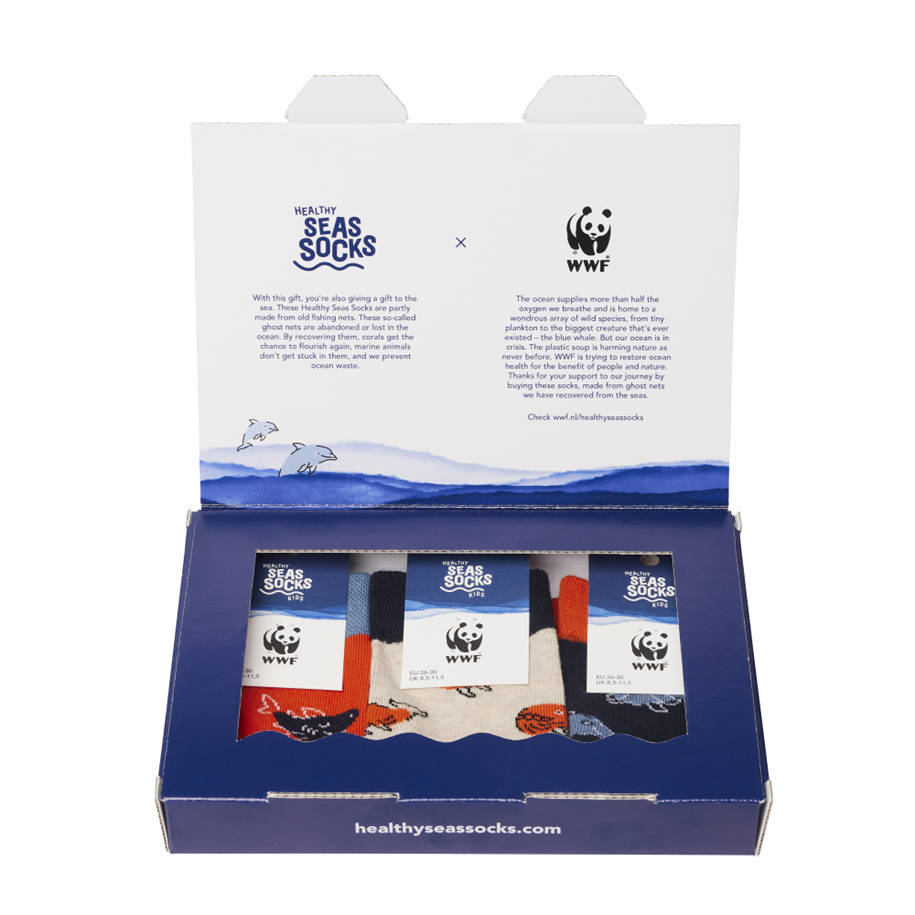 Maak kennis met deze limited edition WWF sokkencollectie, ontwikkeld in samenwerking met Healthy Seas Socks. De sokken zijn zacht, comfortabel en deels gemaakt van verloren of achtergelaten visnetten – een tastbare bijdrage aan het opruimen van onze oceanen.