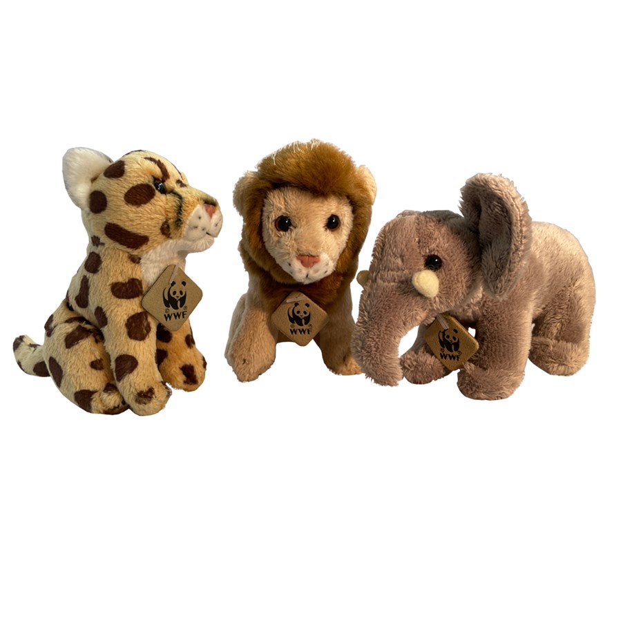 De WWF knuffels zijn er in verschillende maten: van kleine knuffels (tot 20 cm) en middel grote knuffels (20 tot 30 cm) tot grote knuffels (vanaf 30 cm). Voor ieder kind (of andere knuffelliefhebber) is er dus wel een mooi maatje te vinden.