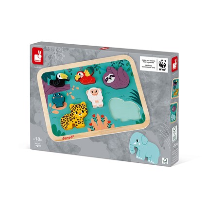 Met deze houten puzzel gaat je kind op ontdekkingstocht in de jungle.