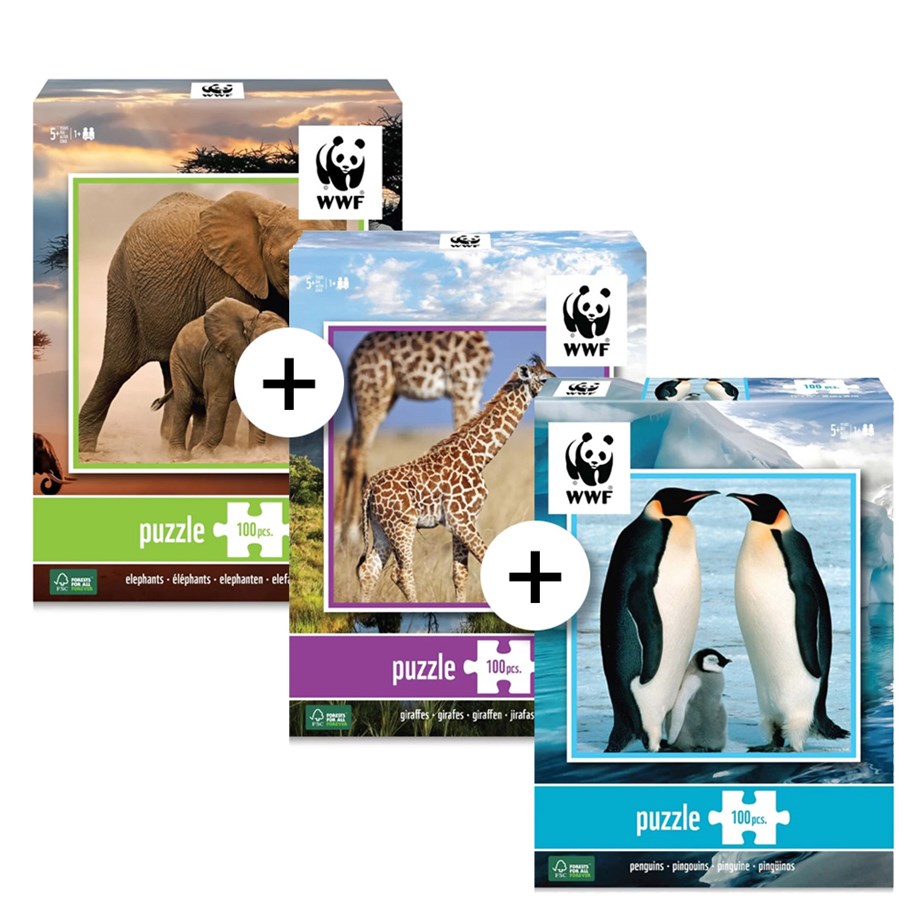 WWF Puzzel - voordeelbundel - baby olifant + giraffe + pinguïn